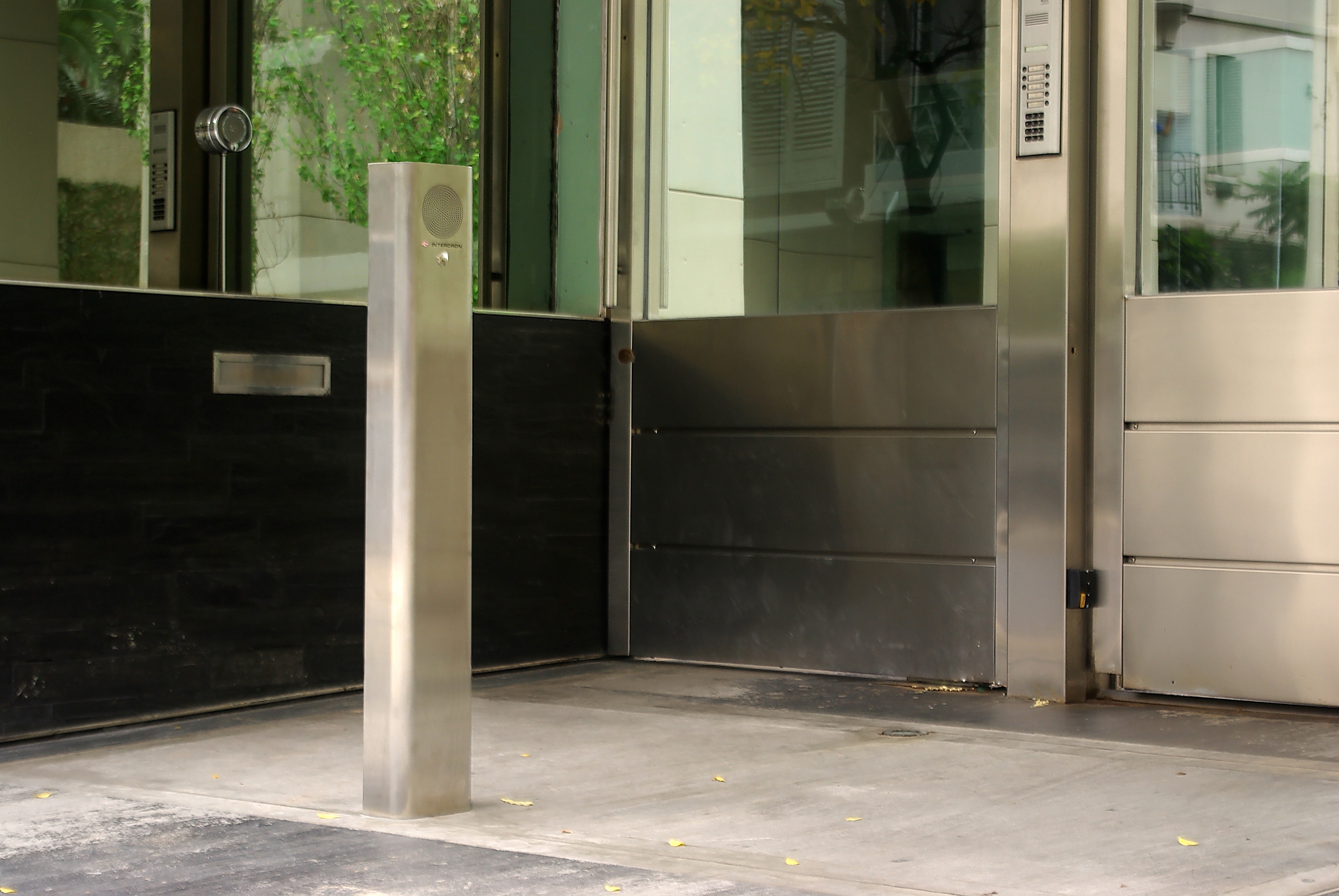 • Pulsador metálico de máxima resistencia para llamada a consola.