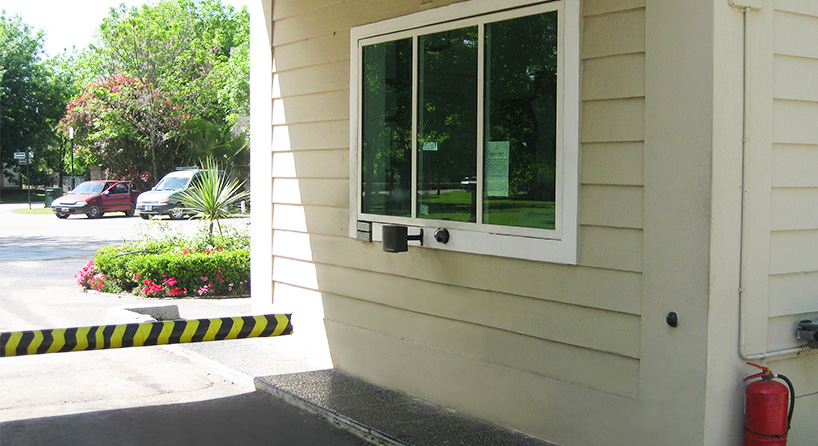 Different types of active speakers and pedestals specifically prepared to be mounted outside allow to maintain protection and to intercommunicate the security personnel in their booths with people arriving in their vehicles: