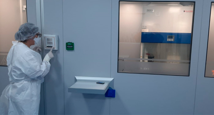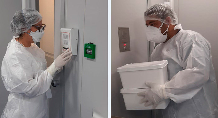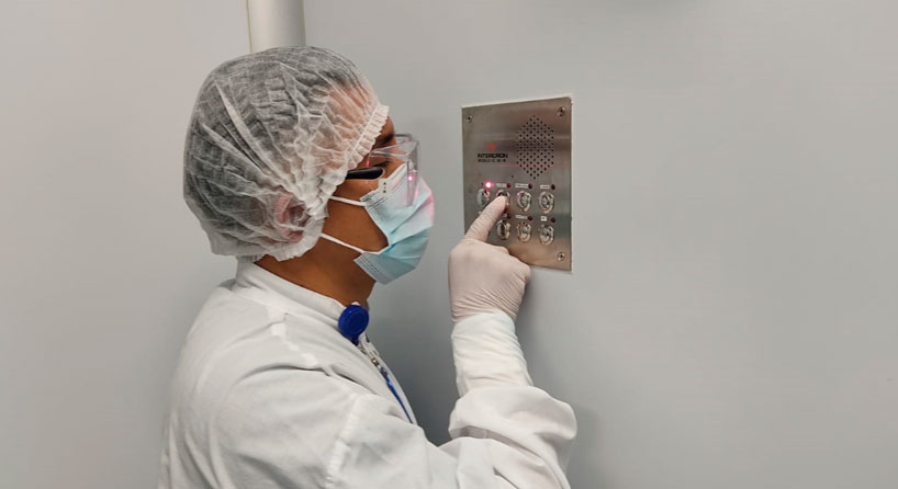 - Si desde el área esterilizada modelo IC RTA/S requieren llamar al intercomunicador del pasillo, pulsan por única vez y se activará un buzzer y/o artefacto luminoso para llamar la atención a quien transite por el mismo.