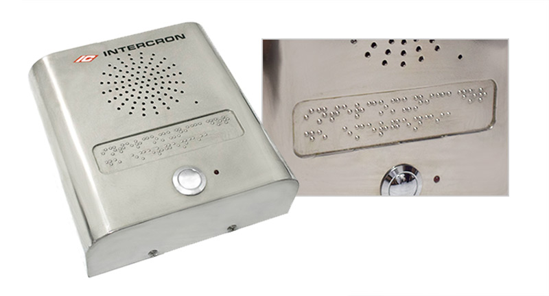 - Los intercomunicadores para ciegos y disminuidos visuales deben colocarse en un lugar próximo al ingreso, fácilmente detectables, por contraste tactil y visual.